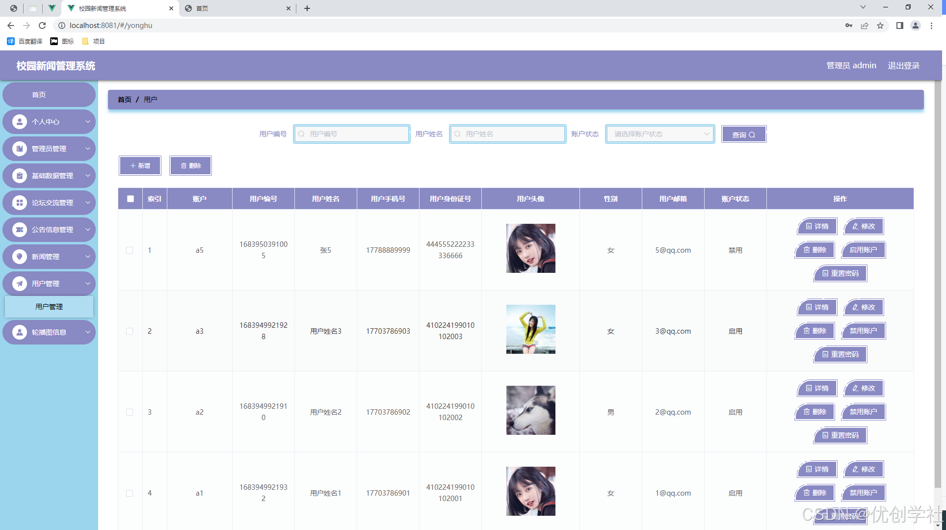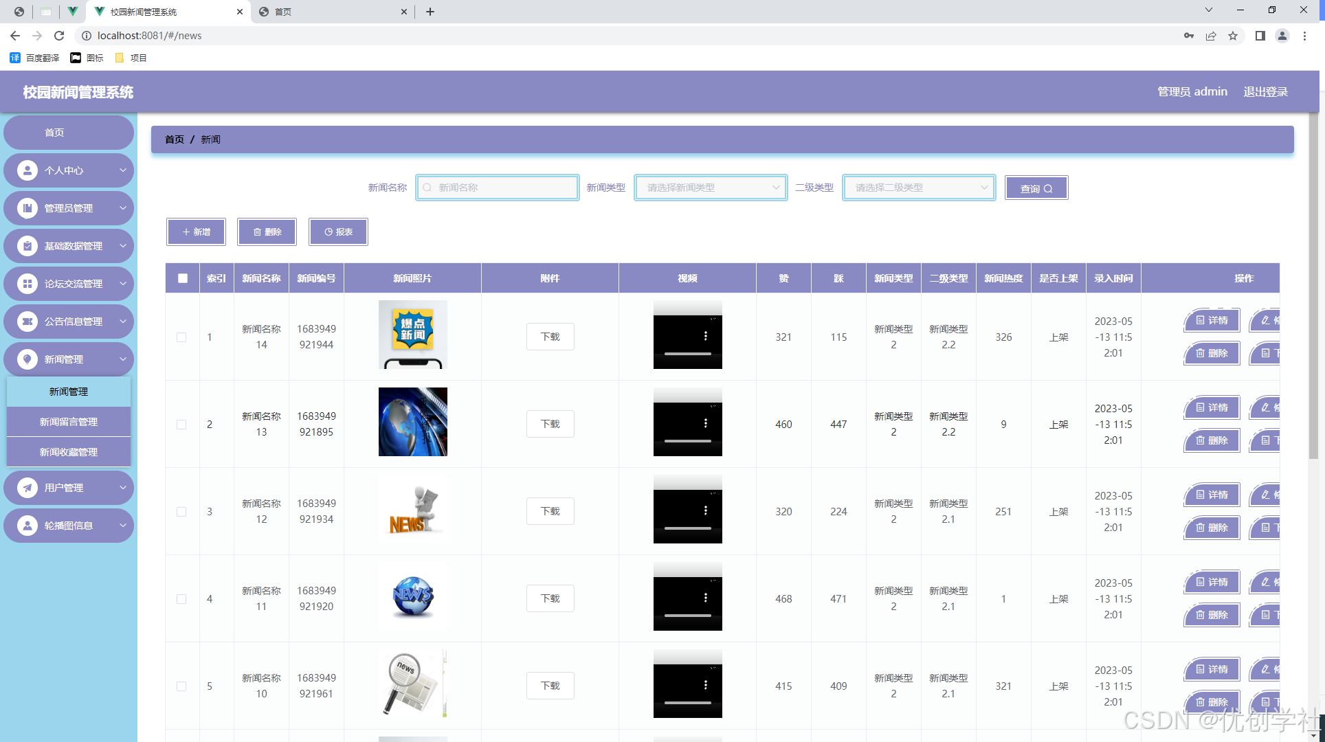 传统信息的管理大部分依赖于管理人员的手工登记与管理,然而,随着近些年信息技术的迅猛发展,让许多比较老套的信息管理模式进行了更新迭代,新闻信息信息因为其管理内容繁杂,管理数量繁多导致手工进行处理不能满足广大用户的需求,因此就应运而生出相应的校园新闻管理系统。