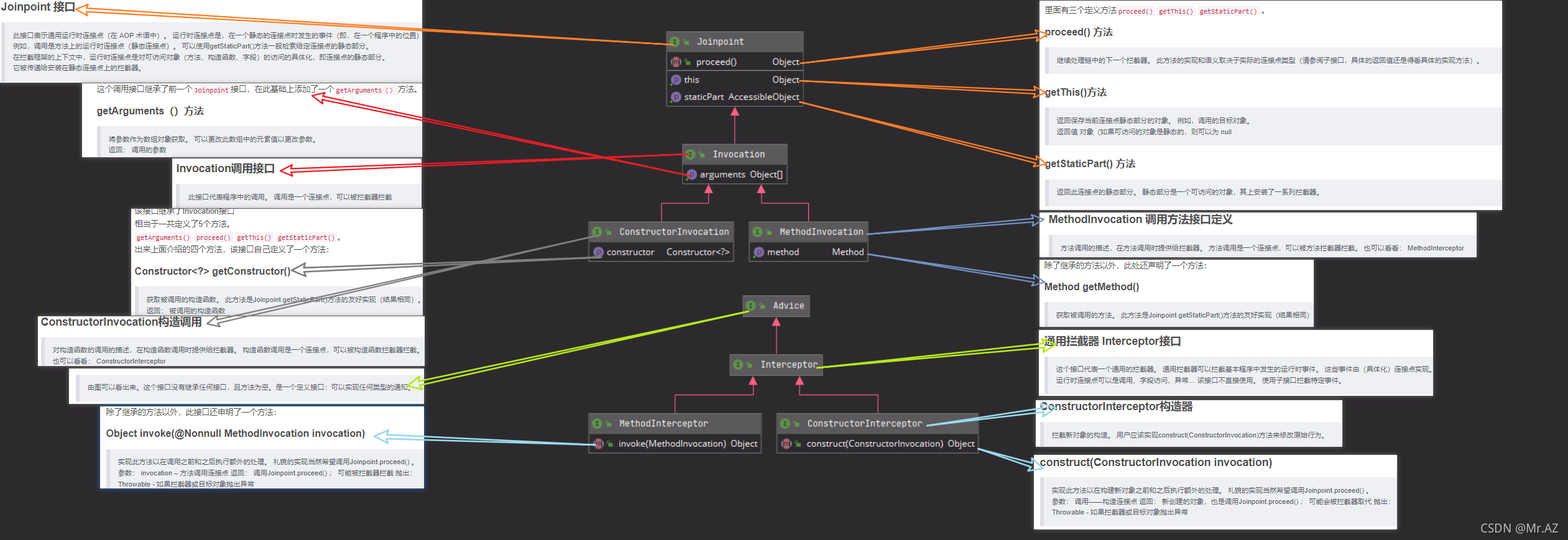 这个调用接口继承了前一个Joinpoint接口,在此基础上添加了一个getArguments()方法。