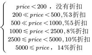 1.某商场对商品进行打折销售,标准如下(商品价格用price表示)