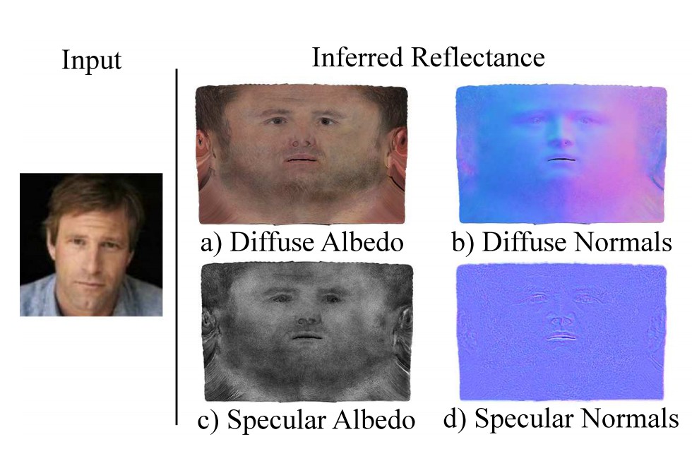 AvatarMe: Realistically Renderable 3D Facial Reconstruction “in-the-wild” 概述与相关工作从野生图像中,缺乏相关的方法能够生成高分辨率、真实感的三维人脸,主要原因是:缺乏可用的训练数据即使有高分辨率数据,也缺乏具有鲁棒性的方法本文提出的AvatarMe方法,是第一种能够基于单张的野生的图像,重建真实感三维人脸的方法PCA方法,虽然能够表示重建人脸的最基本的特征,但是在高频的纹理与几何细节上却有所欠缺,况且也无法表示野生数据中人脸的复杂纹理。随着深度学习的到来,许多编码-解码架构的方法开始被采用,去推理人脸三维几何、反射、光照,但是由于使用的光照模型限制(Lambert