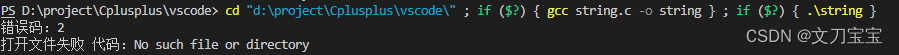 场景:打开文件错误,自动生成错误码为2,通过strerror()函数显示错误信息。