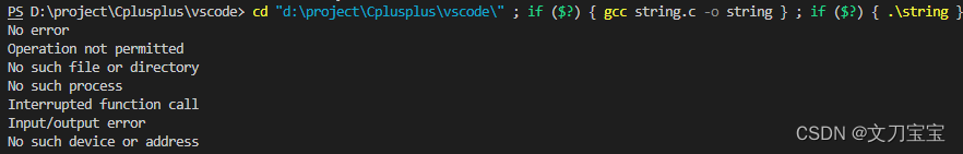 char * strerror ( int errnum ):用于获取指向错误消息字符串的指针。返回值为char*类型,只想描述错误的字符串的指针。C语言的库函数在执行失败时,都会有一个错误码(0 1 2 3 4 5 6 7 8 9 ...)。