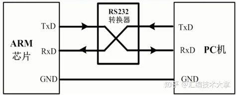 若是芯片与PC机(或者上位机)相连,除了共地之外,就不能这样交叉连接了。尽管PC机和芯片都有TXD和RXD引脚,但是通常PC机通常使用的是RS-232接口(通常为DB9封装),因此不能直接交叉连接。RS-232接口是9针(或引脚),通常是TXD和RXD经过电平转换得到的。故想要使得芯片与PC机的RS232接口直接通信,需要也将芯片的输入与输出端口电平传换成RS232类型,在交叉连接。