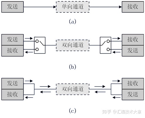 - 半双工:允许数据在两个方向上传输。但是,在某一时刻,只允许数据在一个方向上传输,它实际上是一种切换方向的单工通信,它不需要独立的接收端和发送端,两者可以合并一起使用一个端口。