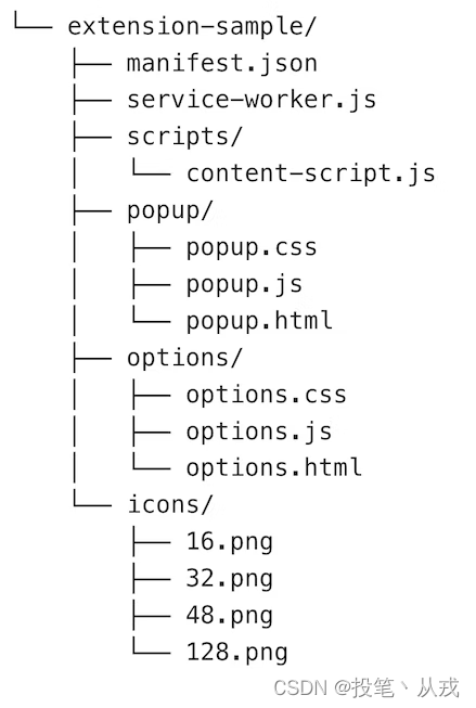 所有的扩展程序必须在根目录中包含且只包含一个 manifest.json 文件。这个文件我们通常称为清单文件,里面记录了关于这个扩展程序的所有元数据:使用的文件,需要的权限,谁来处理事件,谁来处理网页等。 -