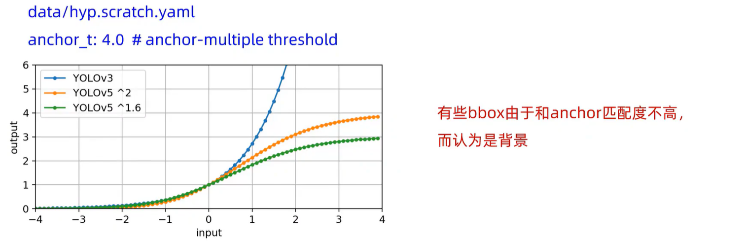 对于yolov5,确保通过sigmoid所有模型输出来修补此错误,同时还要确保中心点保持不变1=fcn (0) ,因此模型的标称零输出将导致使用标称锚框大小(即预先设置的锚框)。当前的方程式将锚点的倍数从最小0限制为最大4(这个地方的解释:sigmoid函数取值[0,1],因此其平方乘以2 的取值范围就是[0,4]),并且锚框-目标匹配也已更新为基于宽度-高度倍数,标称上限阈值超参数为4.0。