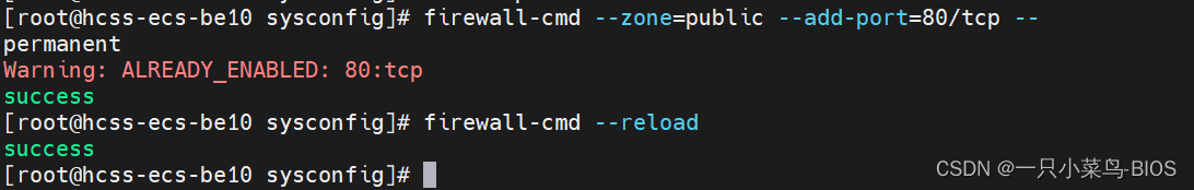 firewall-cmd --zone=public --add-port=80/tcp --permanent