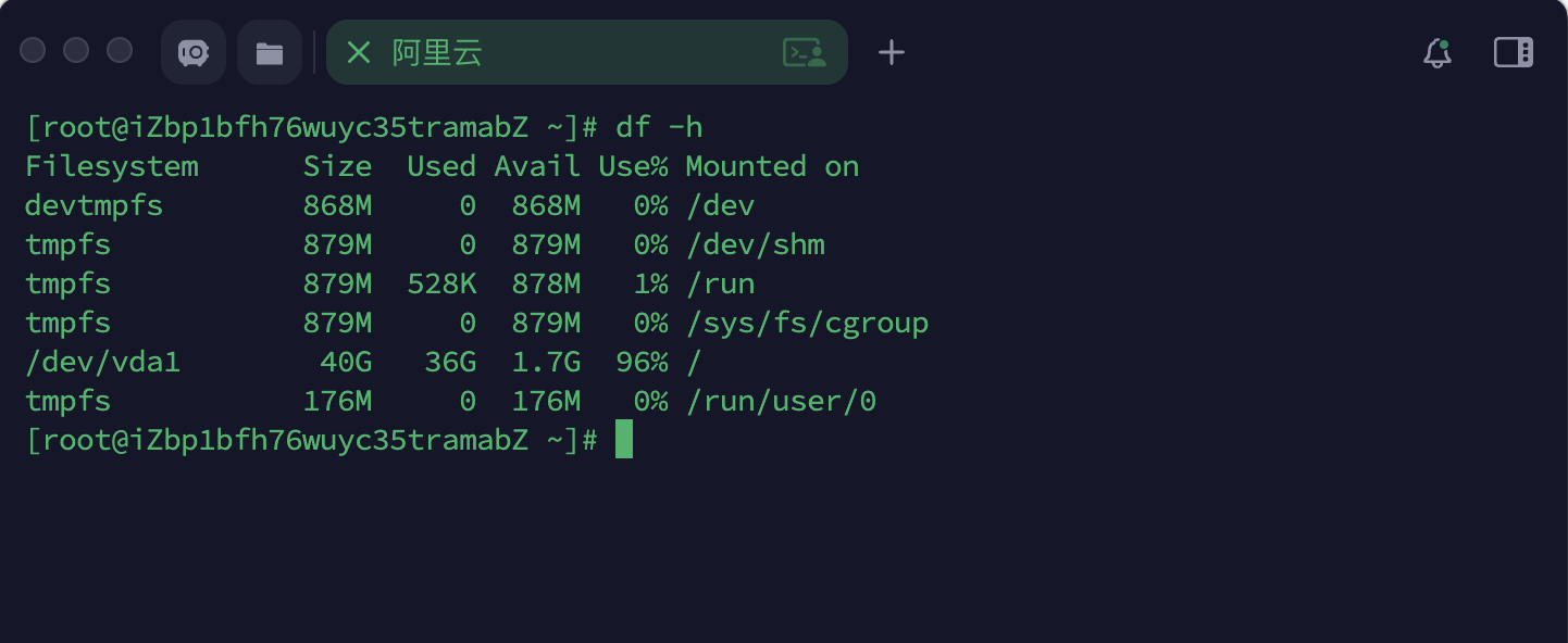 #显示文件系统的磁盘空间使用情况(已挂载的文件系统),包括总大小、已用空间、可用空间、使用百分比和挂载点