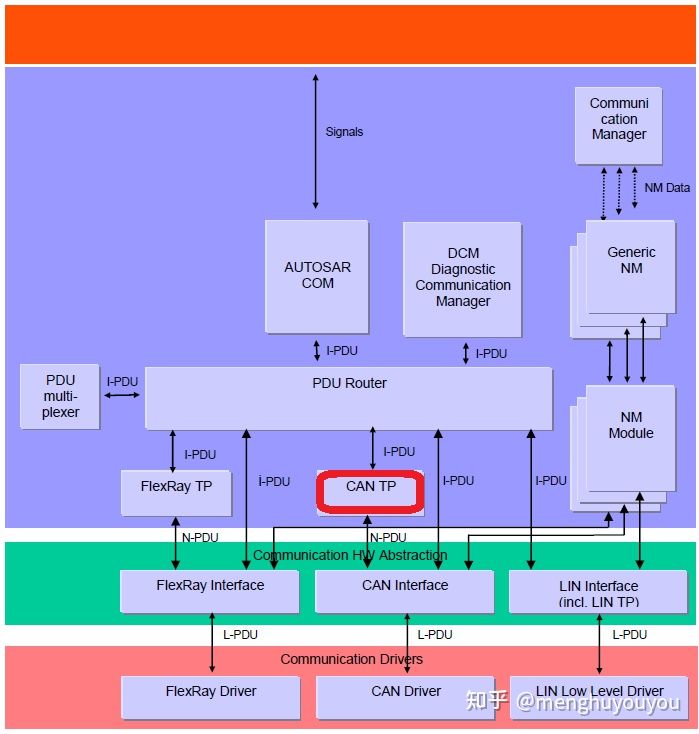【AUTOSAR COM 3.信号的收发流程TX/RX】 本系列文章的主题是CAN通讯,即属于通讯功能,对该功能再按模块细分,如下图3所示。其中CAN通讯的核心模块有4个:COM模块,PDU Router模块, CAN Interface模块和CAN Driver模块1.Can的接收回顾之前文章 menghuyouyou:根据ISO 11898-1标准可知, CAN接收功能需要使用通知(Indication)服务,那么怎么基于AUTOSAR架构实现呢?总的来说,AUTOSAR架构的CAN接收的软件实现流程图如下图4所示:BSW调度器周期性调用CAN Dr.