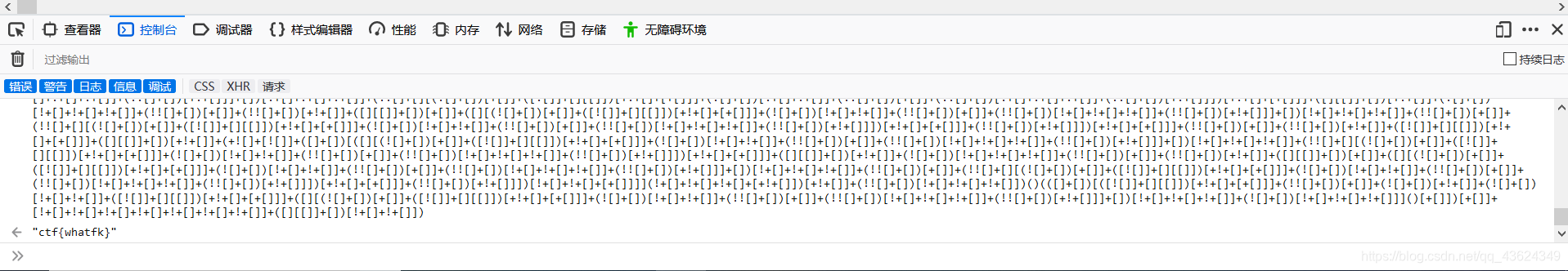这时我们将它复制到控制台中,按下Enter键,就会出现左下角的ctf{whatfk}