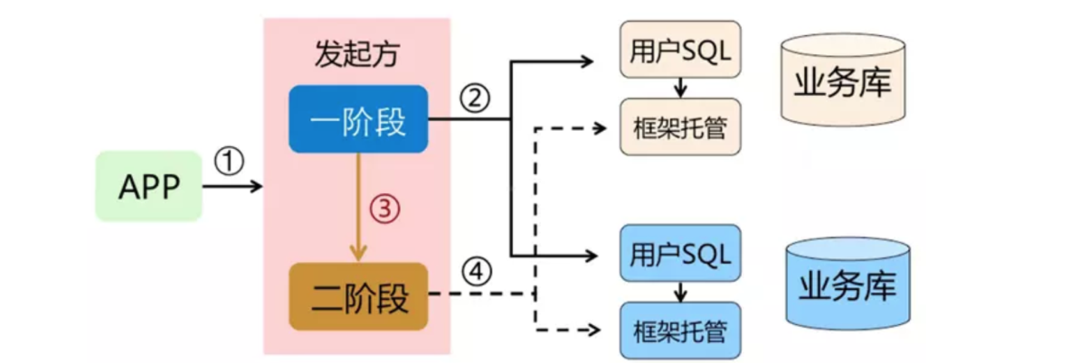 他们有一个共同点,都是“两阶段(2PC)”。“两阶段”是指完成整个分布式事务,划分成两个步骤完成。