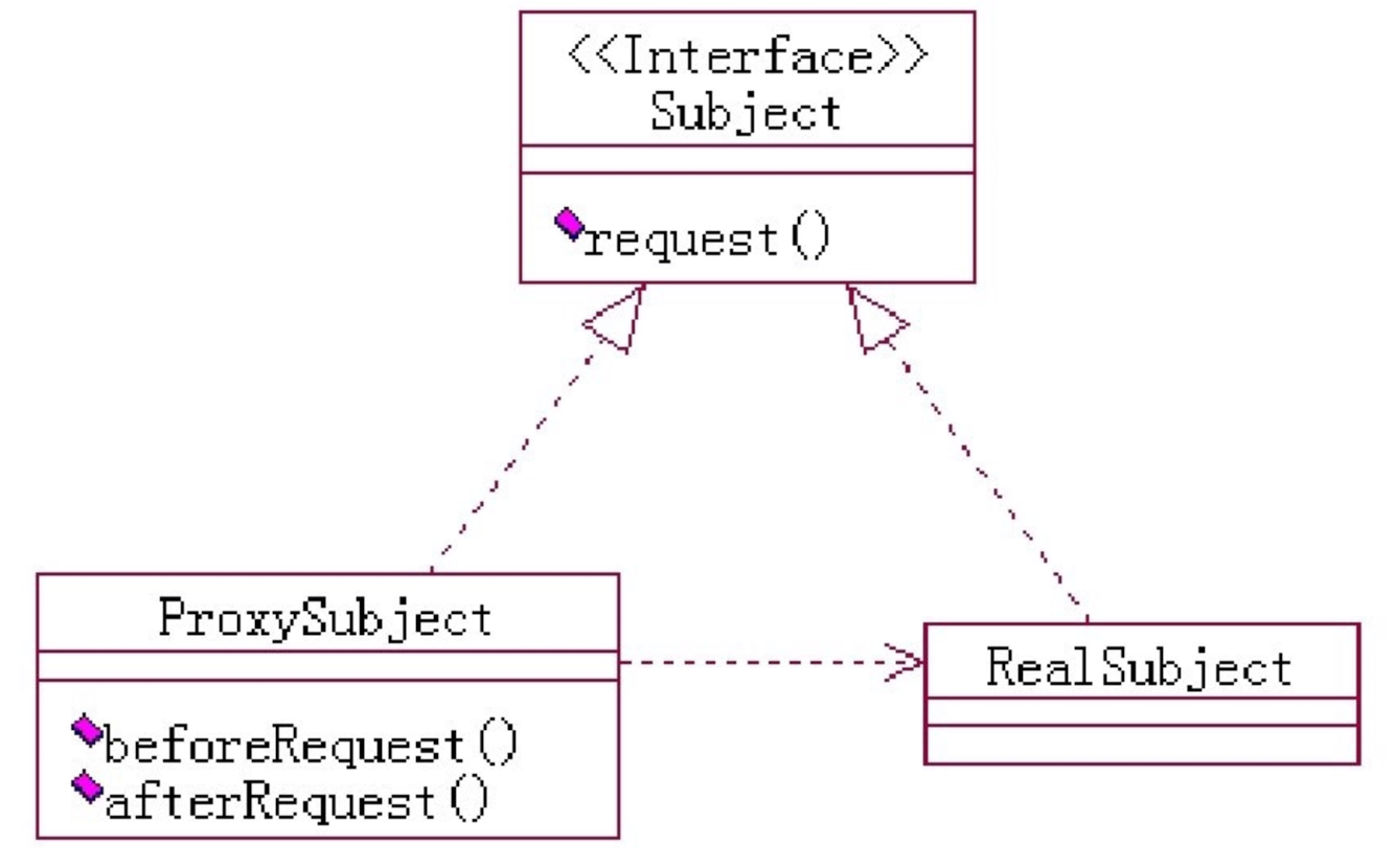 ■ 代理主题(Proxy Subject)角色:也叫做委托类、代理类,该角色负责控制对真实主题的引用,负责在需要的时候创建或删除真实主题对象,并且在真实主题角色处理完毕前后做预处理和善后处理工作。■ 抽象主题(Subject)角色:该角色是真实主题和代理主题的共同接口,以便在任何可以使用真实主题的地方都可以使用代理主题。代理模式是一项基本的设计技巧,许多其他的模式,如状态模式、策略模式、访问者模式本质上也采用了代理模式。⽬标对象的代理,负责控制和管理⽬标对象,并间接地传递外部对⽬标对象的访问。