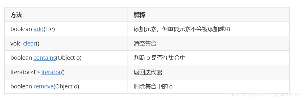 Set的常用方法:
