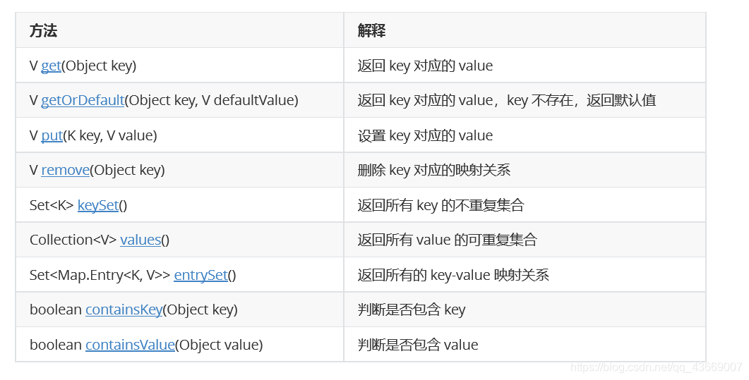 它提供key到value的映射。Map中不能包含相同的key,每个key只能映射一个value,但是可以有多个相同的value。