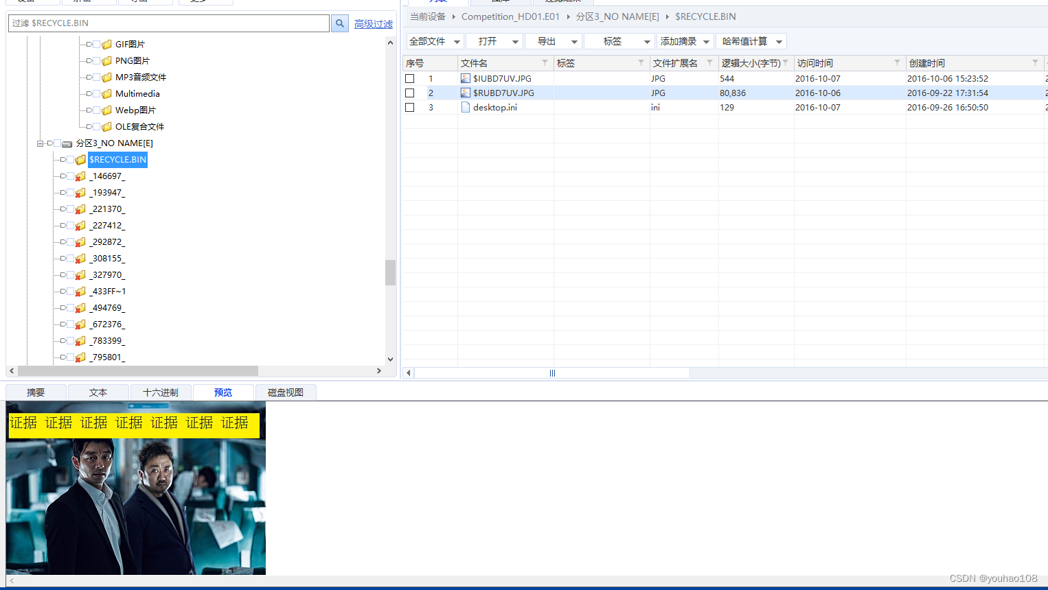 CD分区都没有找到,在磁盘E:$Recycle.bin里查找到
