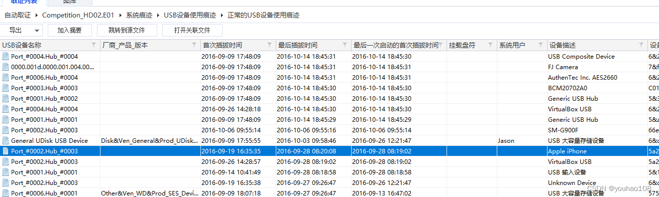 查看系统痕迹,USB使用痕迹 2016-09-19 16:35:35(UTC + 8)