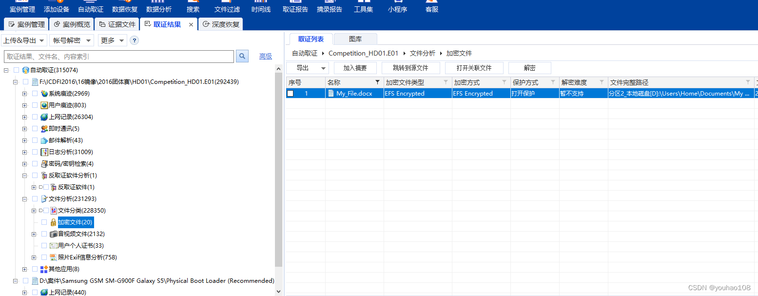直接在取证大师文件分析/加密文件里过滤文件名(EFS Encrypt)