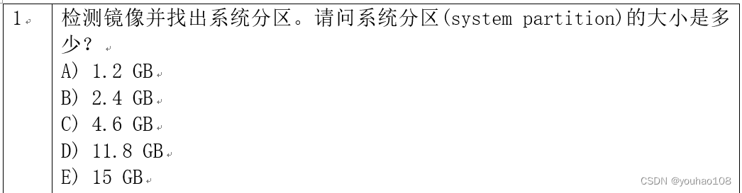 3据映像文件中的主引導記錄(MBR),那个偏移量指明可启动分区的文件系统类型?(十进制)
