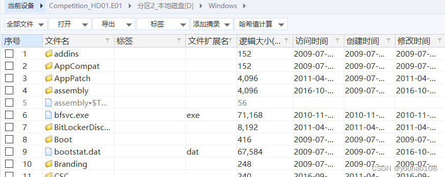 查看分区内文件,查找Windows文件夹,发现Windows文件夹在第二分区,即包含操作系统的分区为第二分区