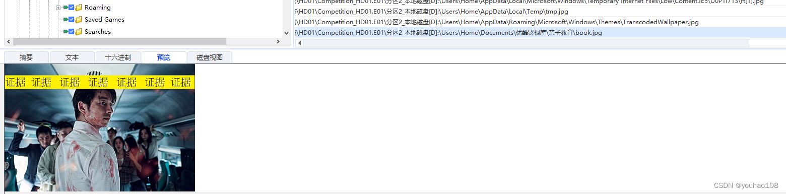 在home路径下过滤*.jpg文件,考虑到垃圾图片的干扰,在文件路径处选择排序,拉到最下面发现两张带有证据的图片