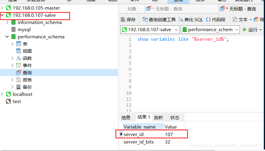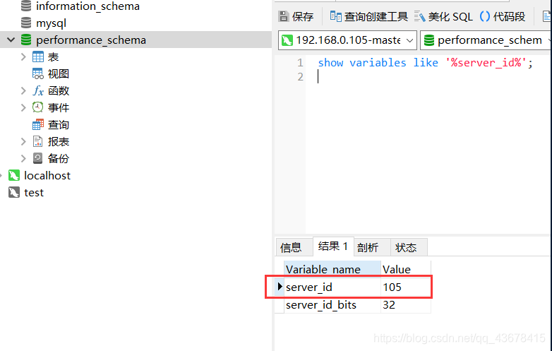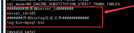 能够查询对应配置文件中的server_id 说明已经配置成功,如下图,则表示配置成功。server_id=105