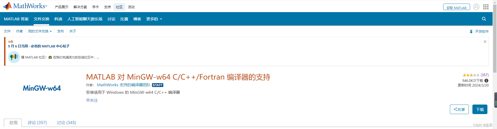 4.继续点击下载,下载得到文件mingw.mlpkginstall