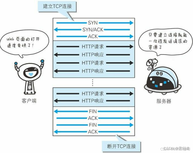 图:持久连接旨在建立 1 次 TCP 连接后进行多次请求和响应的交互