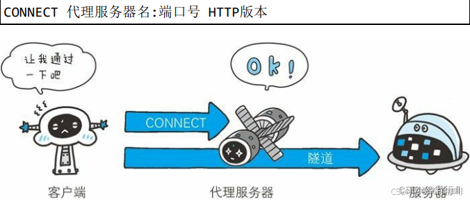 CONNECT 方法要求在与代理服务器通信时建立隧道,实现用隧道协议进行 TCP 通信。主要使用 SSL(Secure Sockets Layer,安全套接