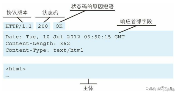 响应报文基本上由协议版本、状态码(表示请求成功或失败的数字代码)、用以解释状态码的原因短语、可选的响应首部字段以及实体主体构成。稍后我们会对这些内容进行详细说明。