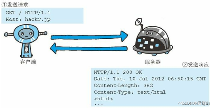 HTTP 协议规定,请求从客户端发出,最后服务器端响应该请求并返回。换句话说,肯定是先从客户端开始建立通信的,服务器端在没有接收到请求之前不会发送响应。