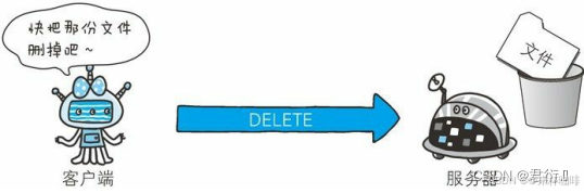 DELETE 方法用来删除文件,是与 PUT 相反的方法。DELETE 方法按请求 URI 删除指定的资源。