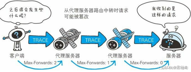 发送请求时,在 Max-Forwards 首部字段中填入数值,每经过一个服务器端就将该数字减 1,当数值刚好减到 0 时,就停止继续传输,最后接收到请求的服务器端则返回状态码 200 OK 的响应。