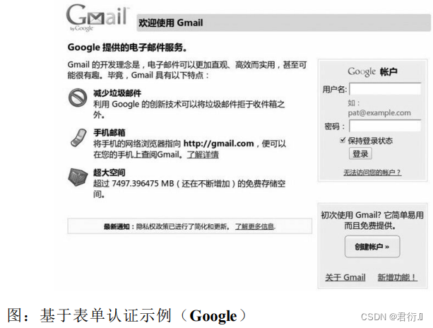 比如 SSH 和 FTP 协议,服务器与客户端之间的认证是合乎标准规范的,并且满足了最基本的功能需求上的安全使用级别,因此这些协议的认证可以拿来直接使用。但是对于 Web 网站的认证功能,能够满足其安全使用级别的标准规范并不存在,所以只好使用由 Web 应用程序各自实现基于表单的认证方式。