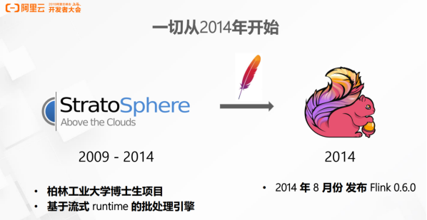 Flink 诞生于欧洲的一个大数据研究项目 StratoSphere。该项目是柏林工业大学的一个研究性项目。早期, Flink 是做 Batch 计算的,但是在 2014 年, StratoSphere 里面的核心成员孵化出 Flink,同年将 Flink 捐赠 Apache,并在后来成为 Apache 的顶级大数据项目,同时 Flink 计算的主流方向被定位为 Streaming, 即用流式计算来做所有大数据的计算,这就是 Flink 技术诞生的背景。