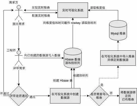 指标口径管理依赖指标系统,指标可视化依赖可视化系统,我们通过下图的需求开发过程来讲解如何将三者联系起来。