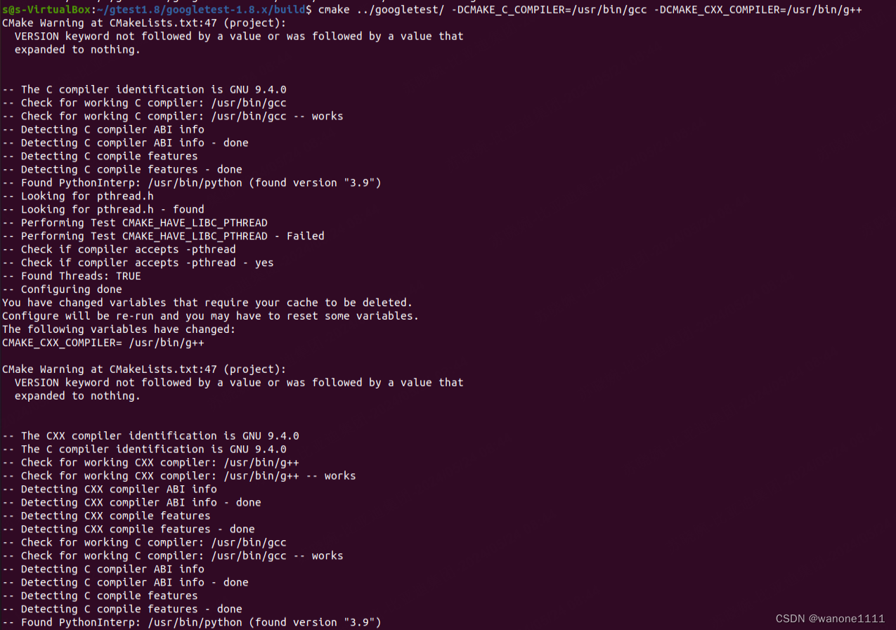 cmake ../googletest/ -DCMAKE_C_COMPILER=/usr/bin/gcc -DCMAKE_CXX_COMPILER=/usr/bin/g++