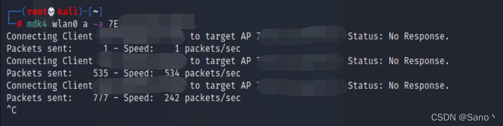 mdk4 网卡 a -a 目标MAC地址 //mdk4安装:apt install mdk4