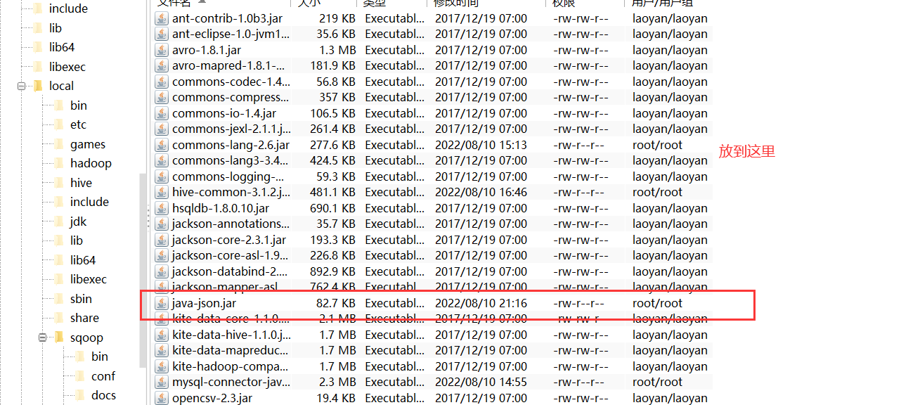 1)在sqoop/lib 下,拷贝一个 java-json的jar包: