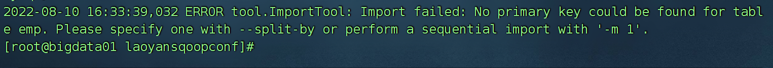 这个a.conf 中不要使用 \ ,不要将语句写成一行。前面也不要写sqoop