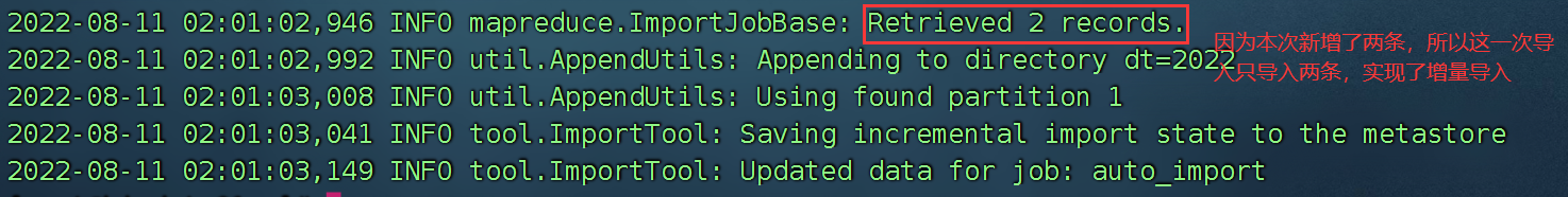 在数据库中新增两条数据,再次执行这个任务,就能看到增量导入的效果。