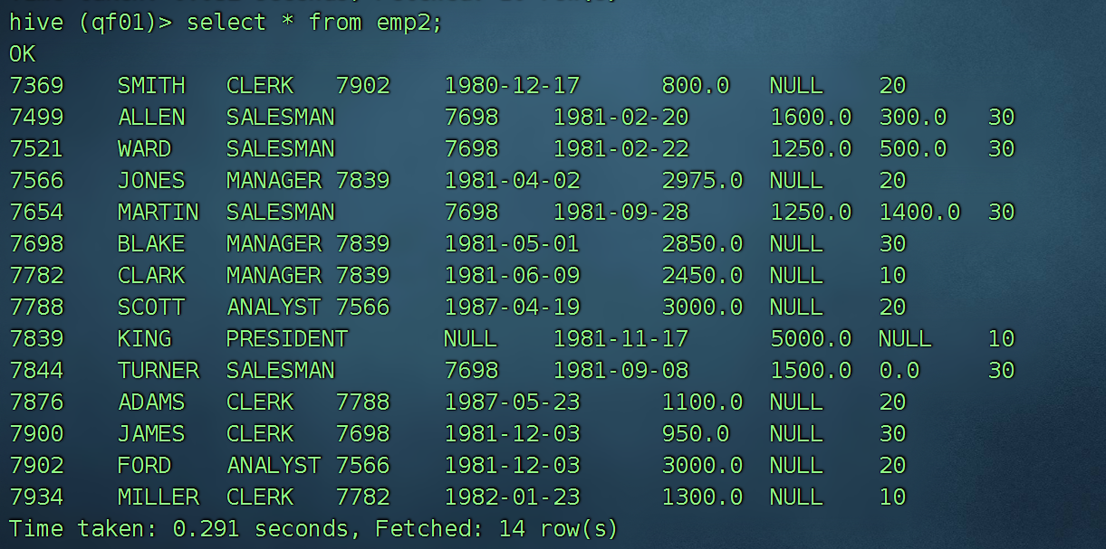 现在创建一个表,字段跟数据的文件字段数量和类型都一样,最重要的是数据类型和存储位置一定要要分析的文件一样。