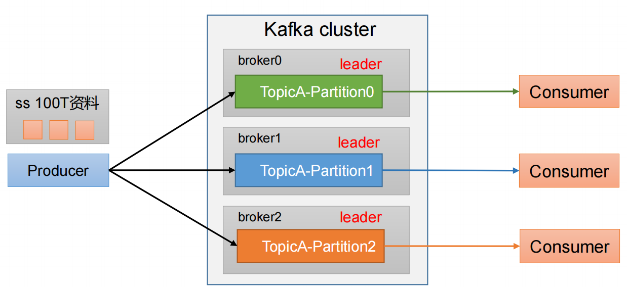 - Broker:消息服务器代理,Kafka集群中的一个kafka服务节点称为一个broker,主要存储消息数据。存在硬盘中。每个topic都是有分区的。