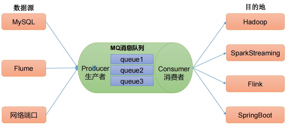 在大数据场景主要采用 Kafka 作为消息队列。在 JavaEE 开发中主要采用 ActiveMQ、 RabbitMQ、RocketMQ。