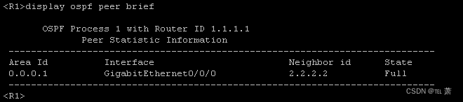 配置完成,等待OSPF网络收敛之后,查看R1与R2的OSPF邻居。