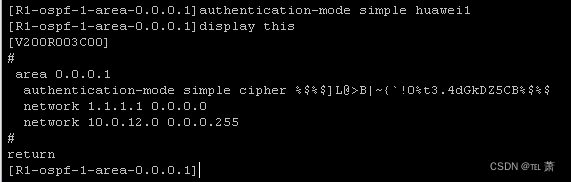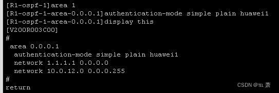 [R1-ospf-1-area-0.0.0.1]authentication-mode simple plain huawei1