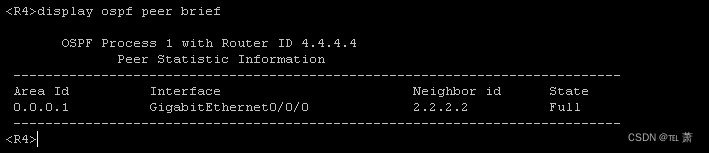 配置完成后,等待一段时间,再次查看R4的OSPF邻居信息。