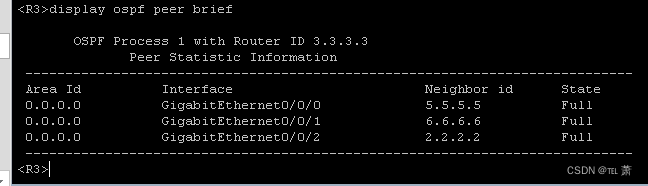 可以观察到,现在区域1中的邻居关系都建立正常。