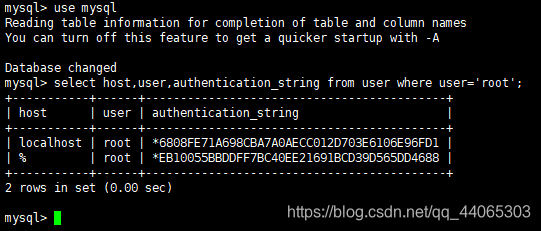 - 查询host,user,authentication_string