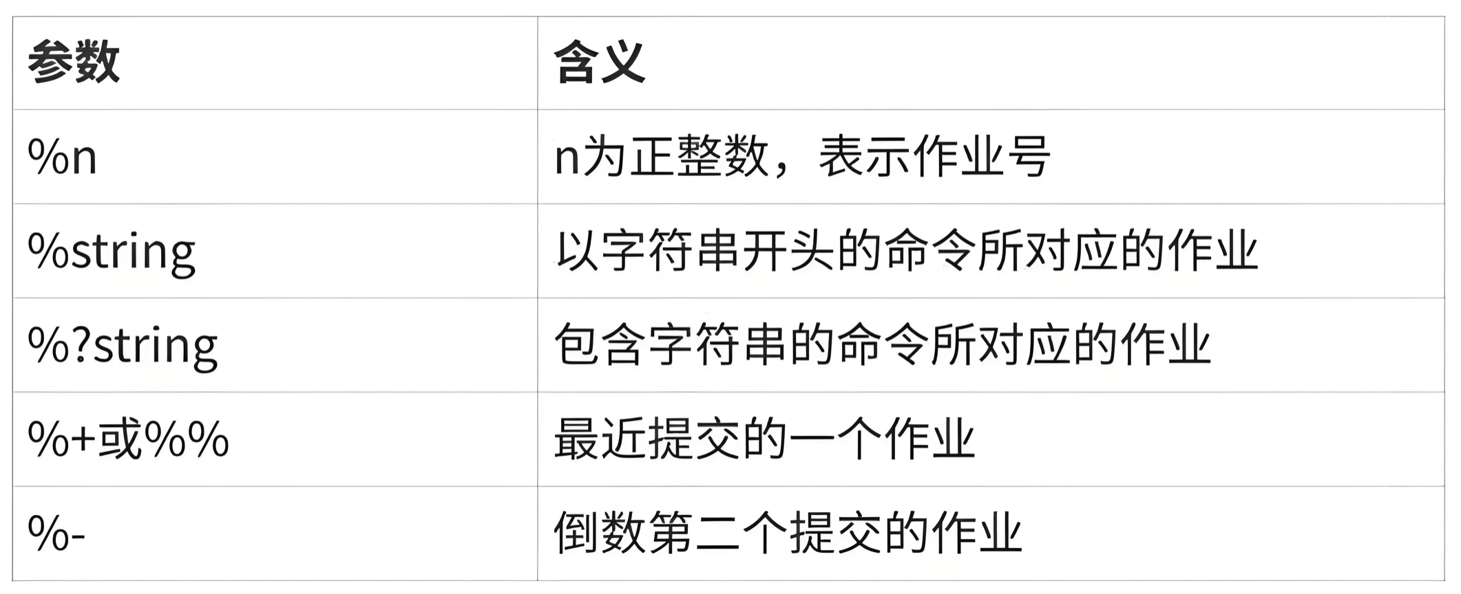 -:表示该作业即将成为默认作业无符号: 表示其他作业