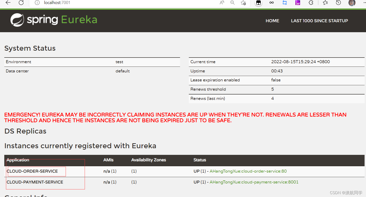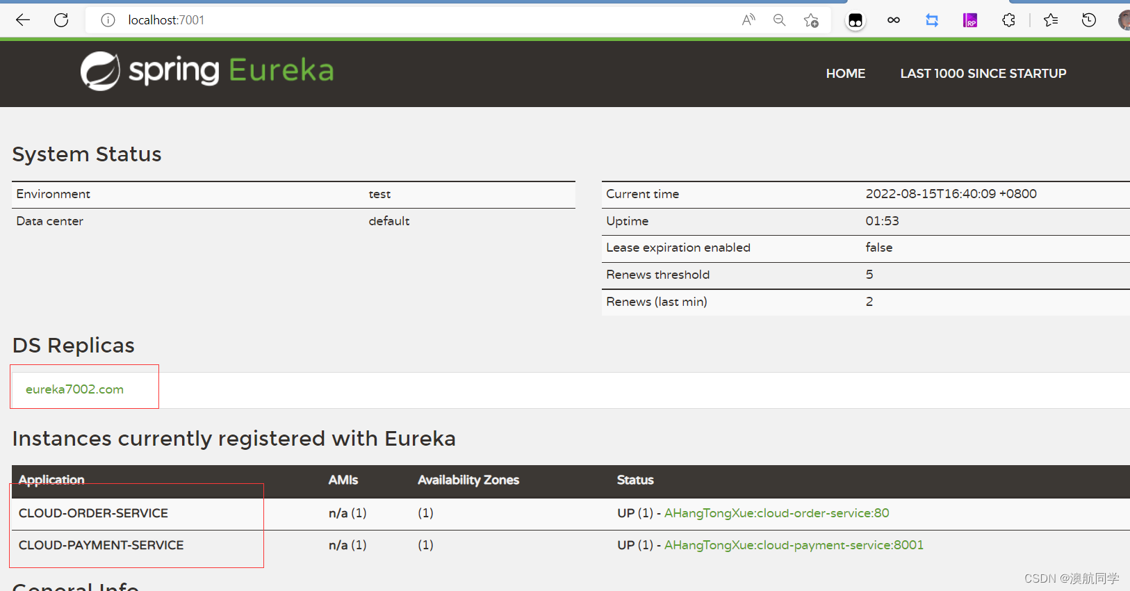 启动所有启动类在localhost7001下看到如下: